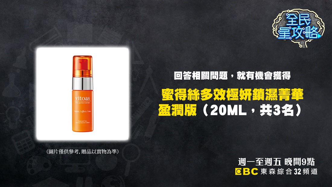 回答本節目出題,即有機會獲得蜜得絲「多效極妍鎖濕菁華 盈潤版」(20ML,共3名)