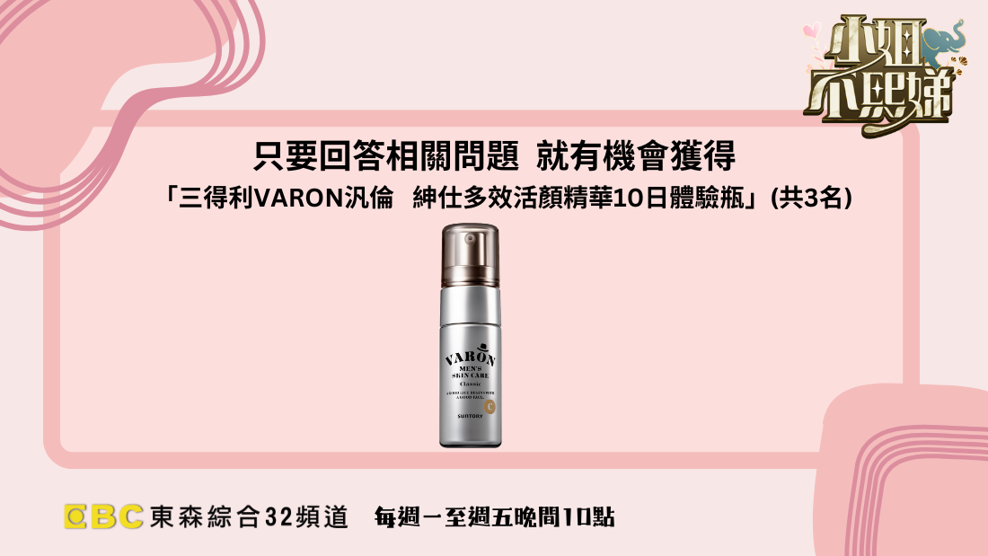快來回答本集節目出題,即有機會獲得三得利VARON汎倫 紳仕多效活顏精華10日體驗瓶(共3名)