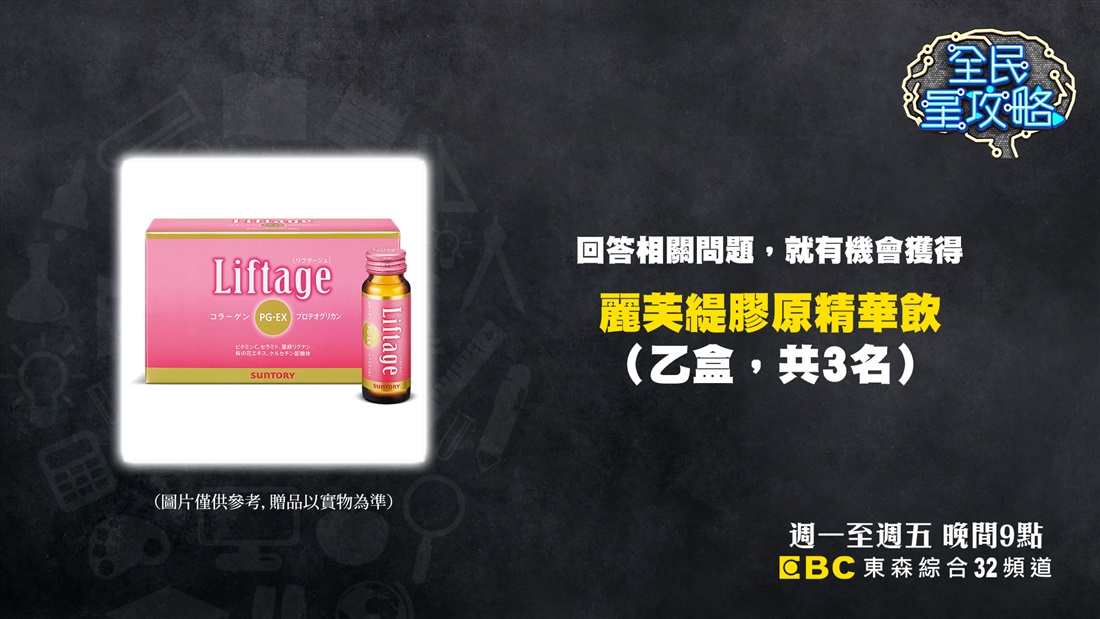 回答本節目出題,即有機會獲得麗芙緹「膠原精華飲」(乙盒,共3名)
