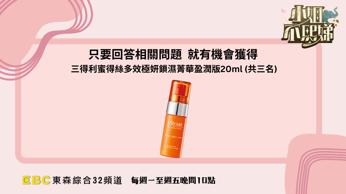 快來回答本集節目出題,即有機會獲得三得利蜜得絲多效極妍鎖濕菁華盈潤版20ml (共三名)