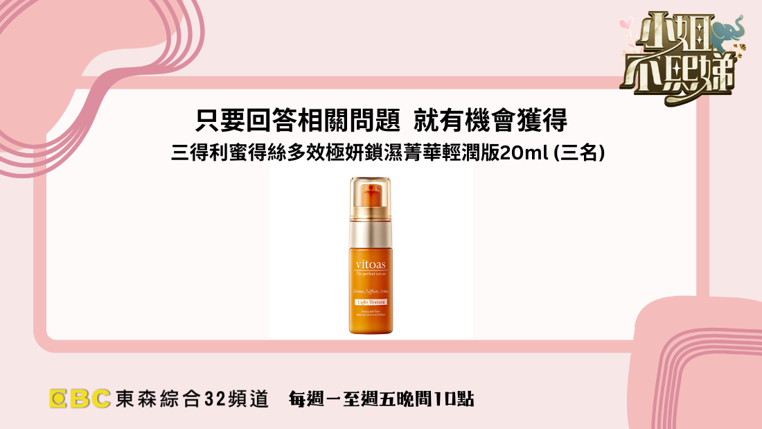 快來回答本集節目出題,即有機會獲得三得利蜜得絲多效極妍鎖濕菁華輕潤版20ml (三名)